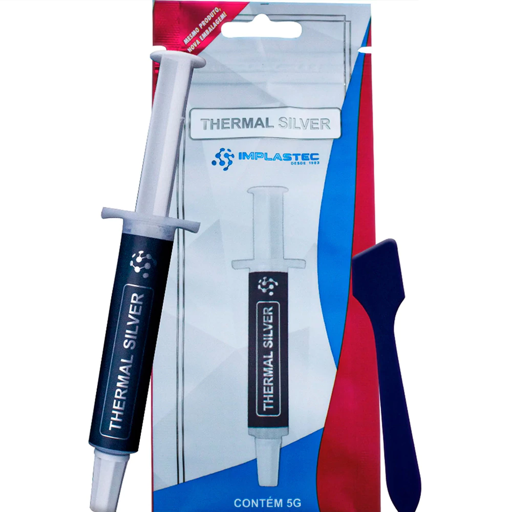 Aplicação: A Thermal Silver é especialmente indicada para uso onde haja necessidade de eliminação de calor mais eficiente que as Pastas Térmicas comuns, como em CPU´s, processadores de alta performance, fontes geradoras de calor, termopares, resistências, montagens de semicondutores e demais componentes.