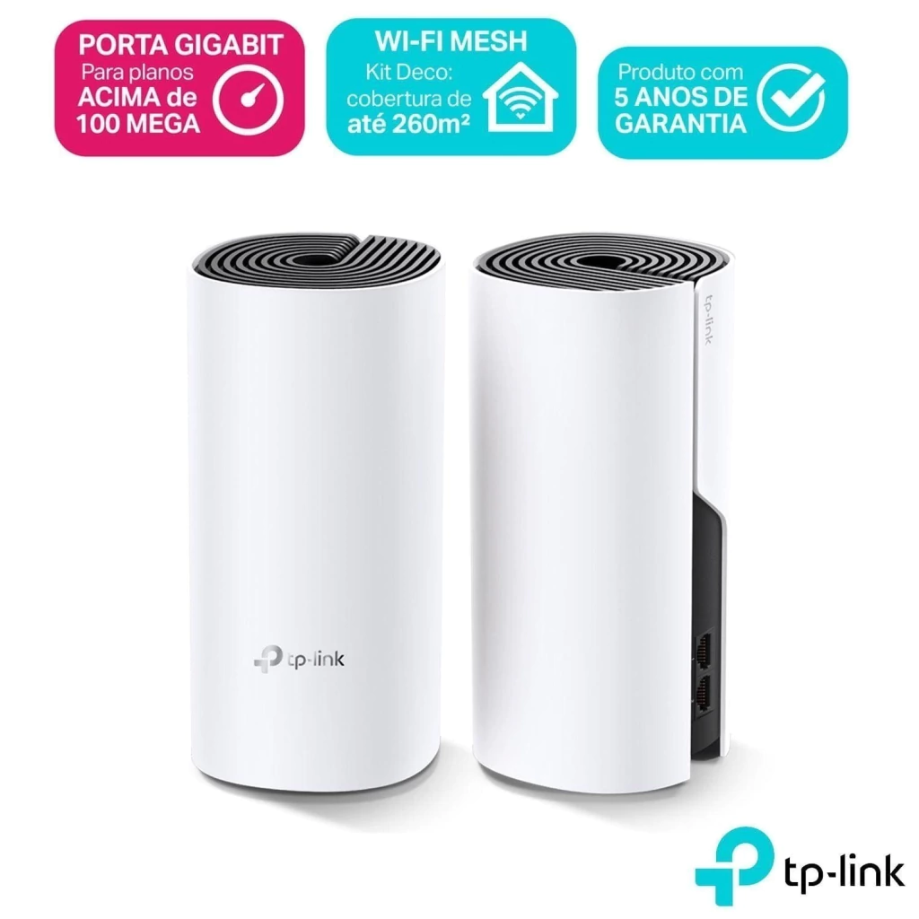 - Interface: 02 portas Gigabit Ethernet (detecção automática WAN / LAN) por unidade Deco
