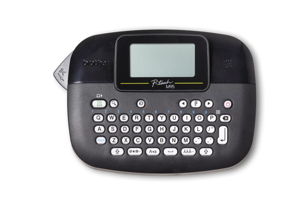 O PT-M95BK é um rotulador eletrônico portátil elegante e moderno que utiliza fitas "M" não laminadas de 9 e 12 mm de largura.